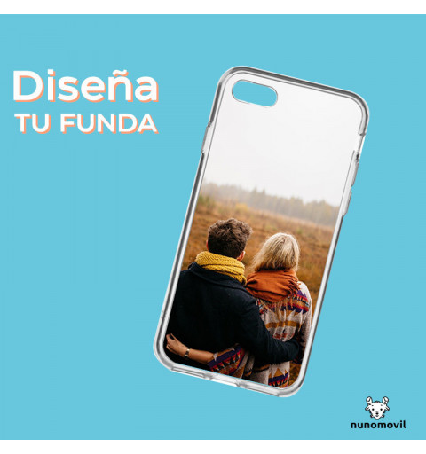 Nuestra funda de gel flexible personalizable con marco transparente, se realiza con tinta UV de alta calidad, resistente a arañazos, golpes y lavados.